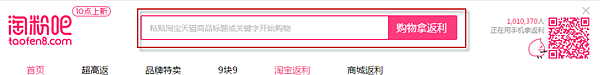 3.然後貼在淘粉吧的搜尋框中,並按下【購物拿返利】